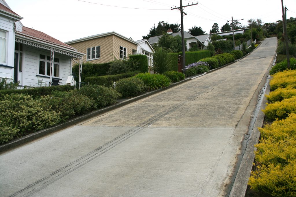 New Zealand has the steepest road in the world. Baldwin Street is north-east of downtown Dunedin and has an incline of a brutal 19.3 degrees (or 35%). That doesn't sound like much in numbers, but seeing it on-site is an entirely different experience. Jogging up the street must be fun. Not.