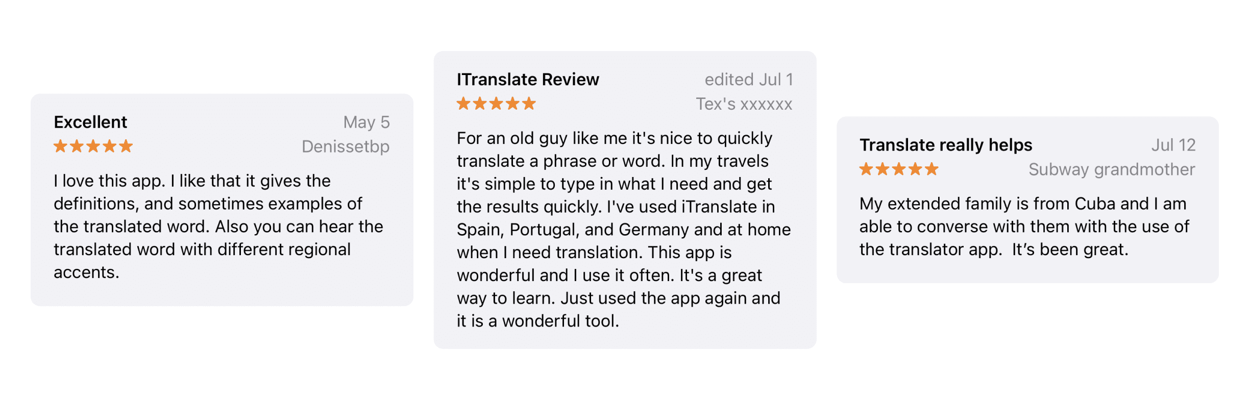 iTranslate is the preferred choice for millions of users worldwide. Rated highly for its user-friendly interface, excellent functionality, and wide range of languages, iTranslate has garnered positive reviews from its users.
