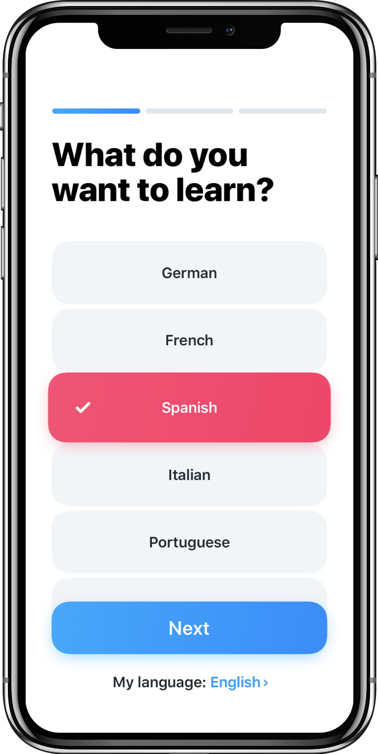 Choose from 3 skill levels for each language.